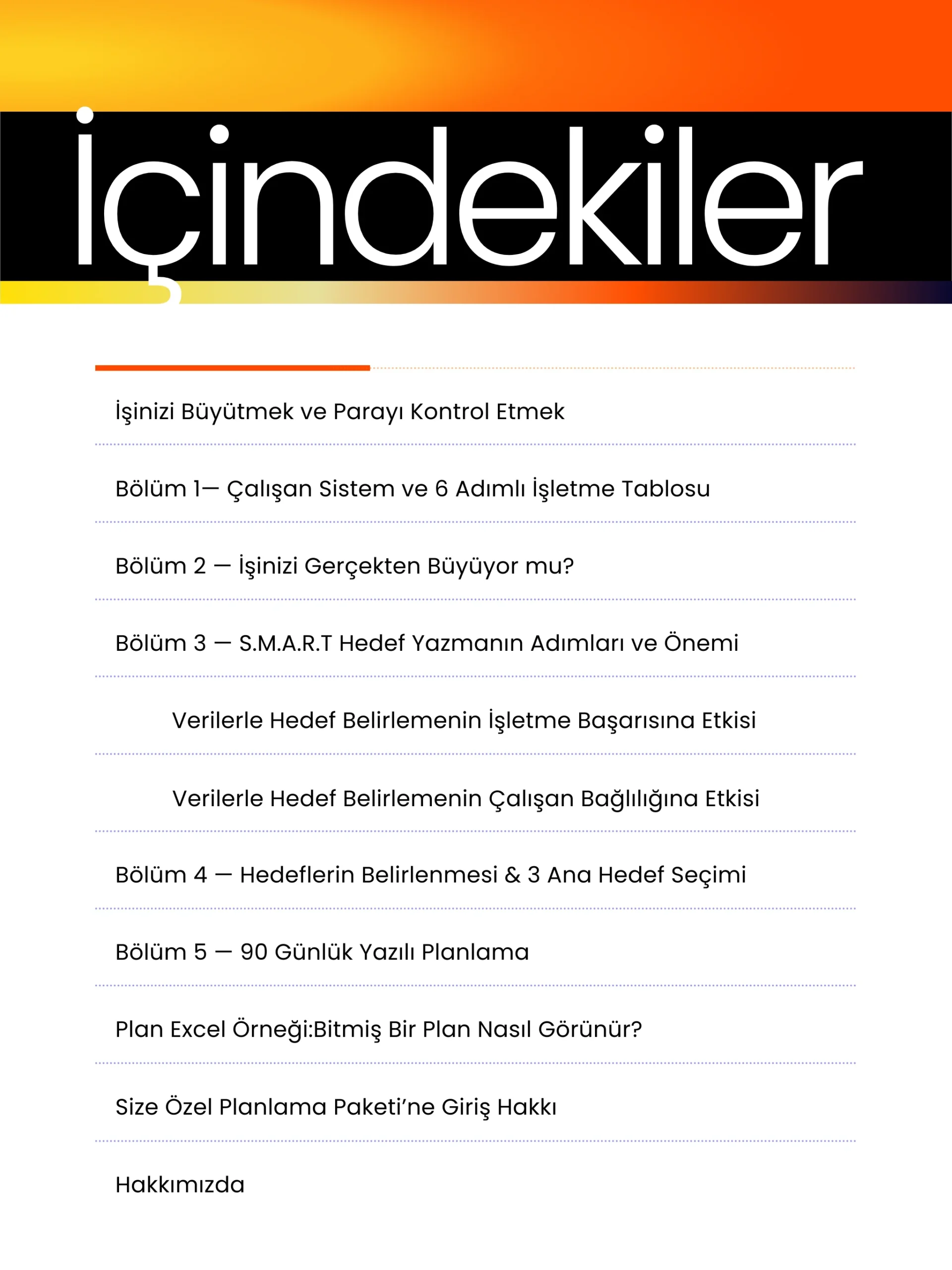 Birçok işletme sahibi çok çalışıyor ama neden yorulduğunu, neden kârın artmadığını tam olarak göremiyor. Çünkü sorun motivasyonda değil, netlikte. Bu eBook; işinizi duygularla değil verilerle yönetmeniz, önceliklerinizi sadeleştirmeniz ve kontrolü yeniden elinize almanız için hazırlandı. Büyümek isteyen ama dağılmak istemeyen işletmeler için, karmaşayı düzene çeviren bir yol haritası sunar.